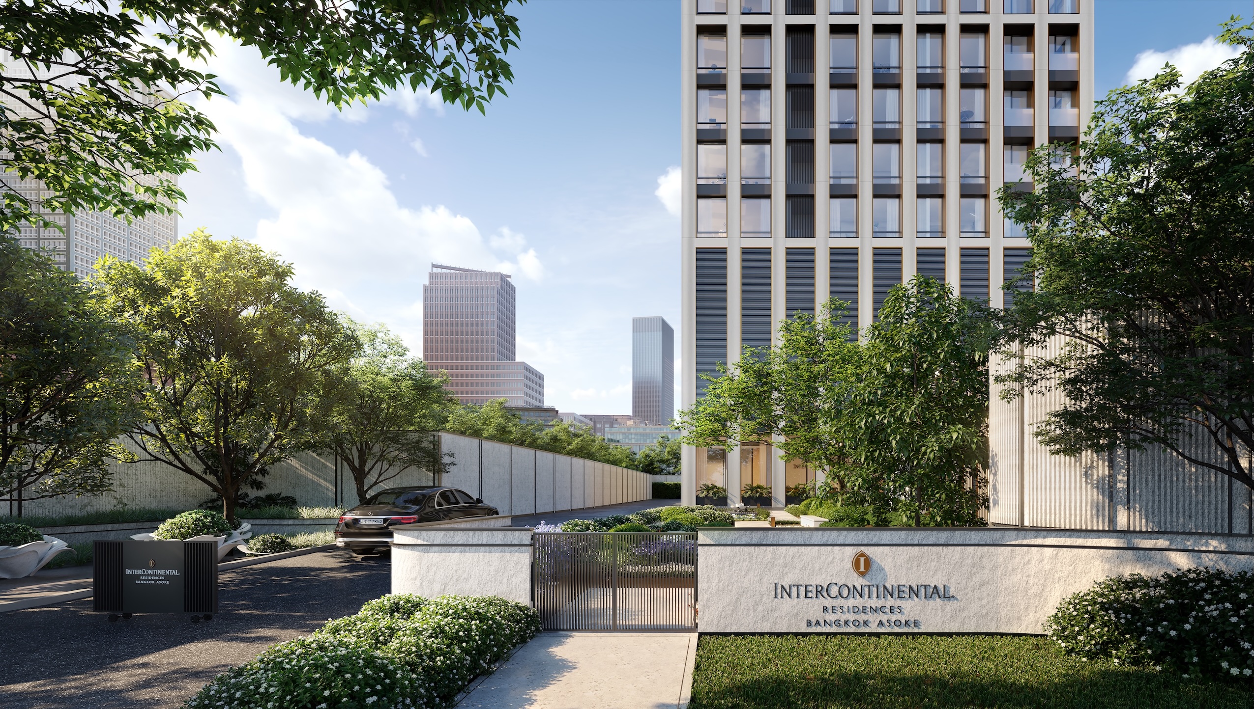這個命名為InterContinental Residences Bangkok Asoke的項目,坐落於素坤逸16巷,正處於BTS與MRT雙軌交匯的都市脈動中心。項目一側毗鄰班嘉奇蒂公園的綠意,另一側直通EM商圈的繁華,這種獨特的區位選擇,體現了開發商對現代都市生活方式的深刻理解。